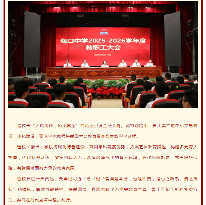 守正笃行 深化内涵发展——海口中学召开2025-2026学年度教职工大会